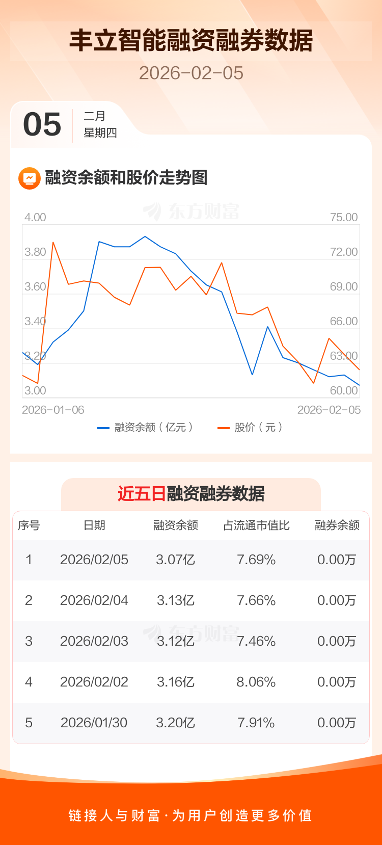 交易所最新数据显示,丰立智能于2026年2月5日获融资买入922.87万元,融资偿还1478.60万元,当日融资净偿还555.73万元。目前,该股融资余额3.07亿,占流通市值比例为7.69%。