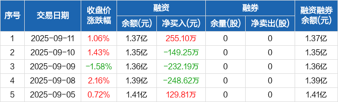 国科恒泰:融资净买入255.1万元,融资余额1.37亿元(09-11)
