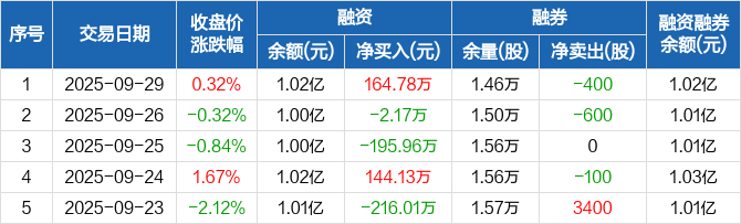 敷尔佳:融资净买入164.78万元,融资余额1.02亿元(09-29)