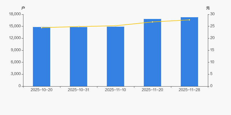 自2025年10月31日以来,公司股东户数连续3期上涨,截至目前增幅为16.64%。2025年10月31日至2025年11月28日区间股价上涨11.24%。