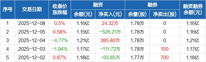 敷尔佳:融资净买入24.32万元,融资余额1.16亿元(12-08)