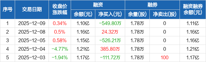 敷尔佳:融资净偿还549.8万元,融资余额1.1亿元(12-09)