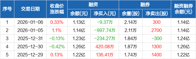 敷尔佳:连续3日融资净偿还累计1241.38万元(01-06)