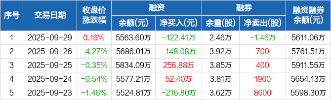 致欧科技:融资净偿还122.41万元,融资余额5563.6万元(09-29)