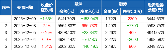致欧科技:融资净偿还153.04万元,融资余额5411.79万元(12-09)