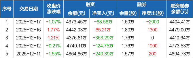 致欧科技:融资净偿还68.58万元,融资余额4373.45万元(12-17)