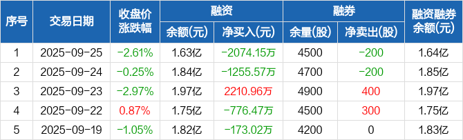 鼎泰高科:融资净偿还2074.15万元,融资余额1.63亿元(09-25)