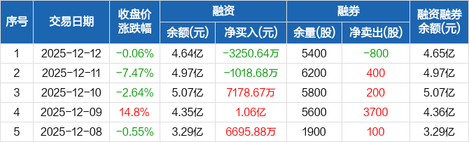 鼎泰高科:融资净偿还3250.64万元,融资余额4.64亿元(12-12)