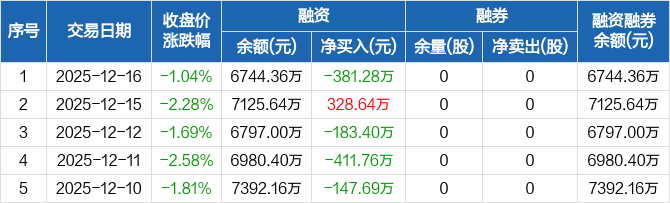 通达海:融资净偿还381.28万元,融资余额6744.36万元(12-16)