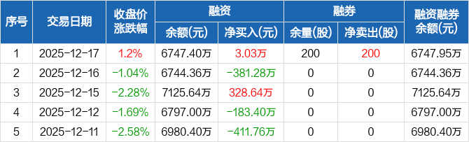通达海:融资净买入3.03万元,融资余额6747.4万元(12-17)