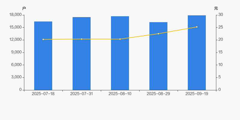 2025年7月18日至今,公司股东户数有所增长,区间涨幅为8.94%。2025年7月18日至2025年9月19日区间股价上涨24.63%。