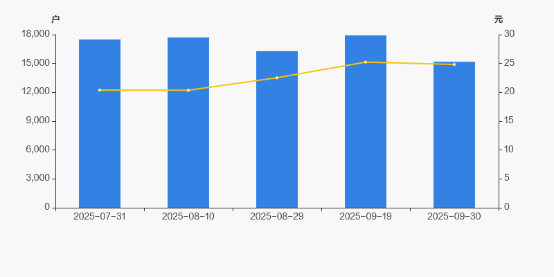 2025年7月31日至今,公司股东户数显著下降,区间跌幅为13.23%。2025年7月31日至2025年9月30日区间股价上涨21.78%。