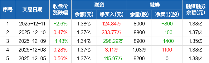 赛维时代:融资净买入124.84万元,融资余额1.38亿元(12-11)