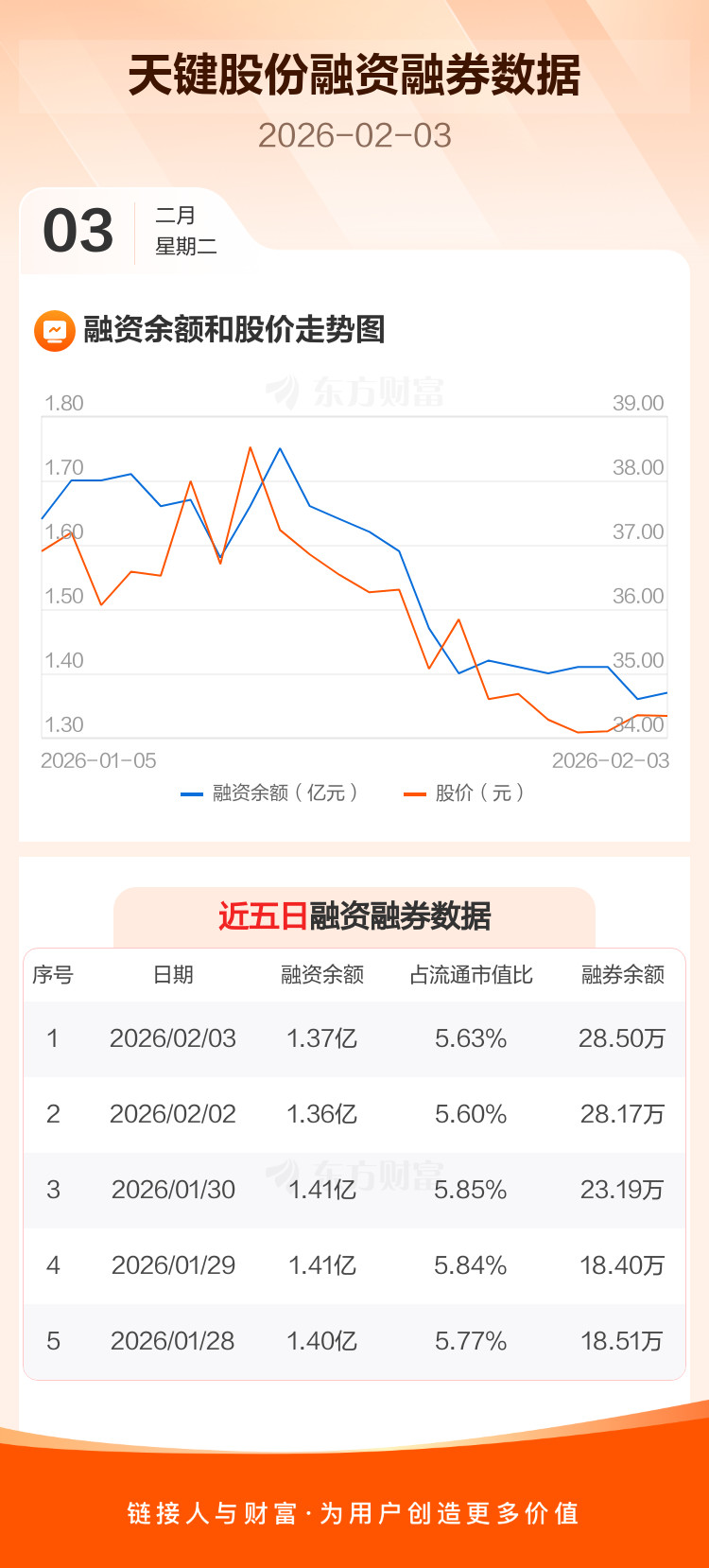 交易所最新数据显示,天键股份于2026年2月3日获融资买入878.02万元,融资偿还805.18万元,当日融资净买入72.84万元。目前,该股融资余额1.37亿,占流通市值比例为5.63%。