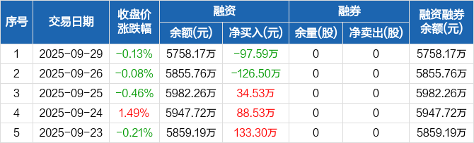 未来电器:融资净偿还97.59万元,融资余额5758.17万元(09-29)