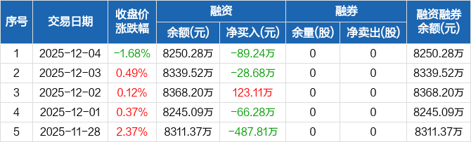 未来电器:融资净偿还89.24万元,融资余额8250.28万元(12-04)
