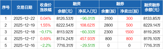 未来电器:融资净偿还96.01万元,融资余额8126.53万元(12-22)