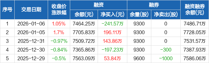 未来电器:融资净偿还241.57万元,融资余额7464.25万元(01-06)