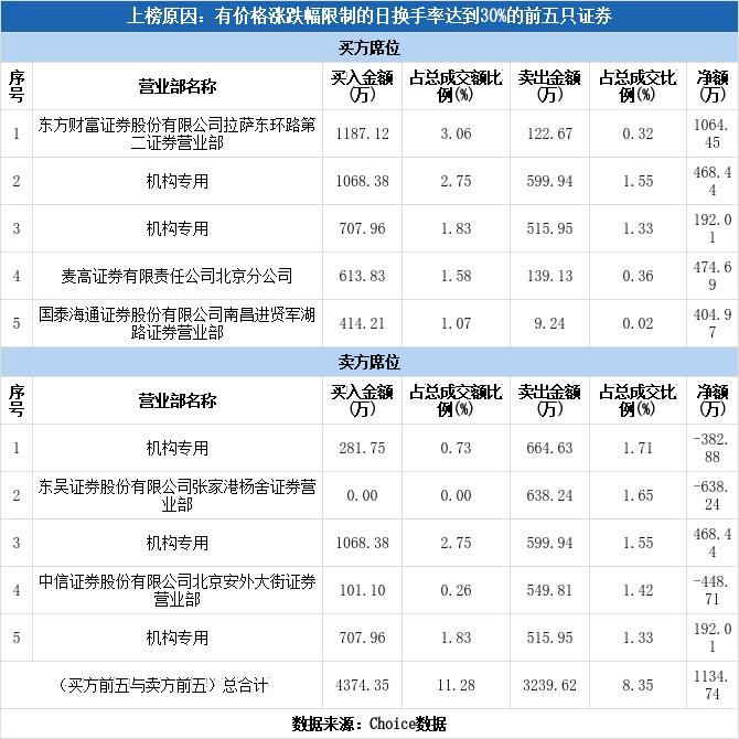 龙虎榜数据显示,今日共5个机构席位出现在龙虎榜单上,分别位列买二、买三、卖一、卖三、卖五,合计净买入277.57万元,占龙虎榜净买额的24.46%。