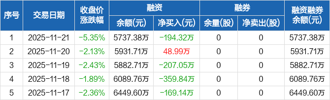 欣灵电气:融资净偿还194.32万元,融资余额5737.38万元(11-21)