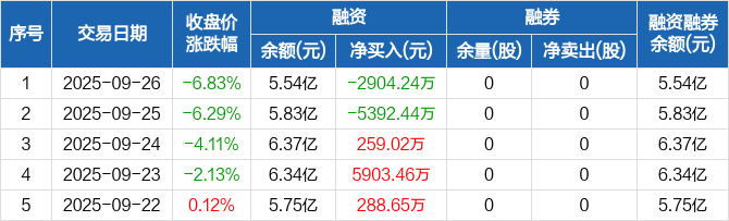 隆扬电子:融资净偿还2904.24万元,融资余额5.54亿元(09-26)