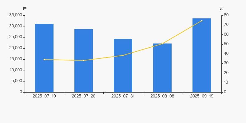 2025年7月10日至今,公司股东户数有所增长,区间涨幅为8.23%。2025年7月10日至2025年9月19日区间股价上涨118.69%。