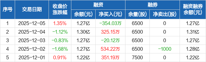 昊帆生物:融资净偿还354.03万元,融资余额1.27亿元(12-05)