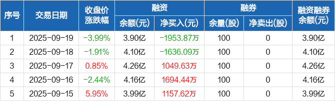 宏景科技:融资净偿还1953.87万元,融资余额3.9亿元(09-19)