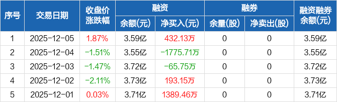 宏景科技:融资净买入432.13万元,融资余额3.59亿元(12-05)