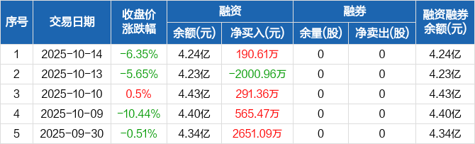 溯联股份:融资净买入190.61万元,融资余额4.24亿元(10-14)