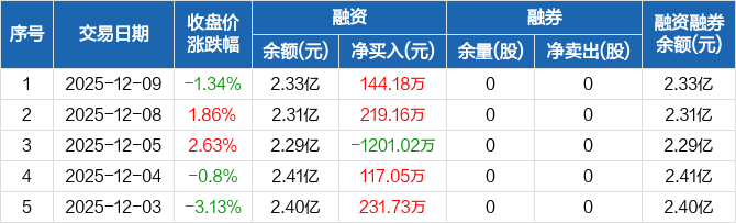 溯联股份:融资净买入144.18万元,融资余额2.33亿元(12-09)