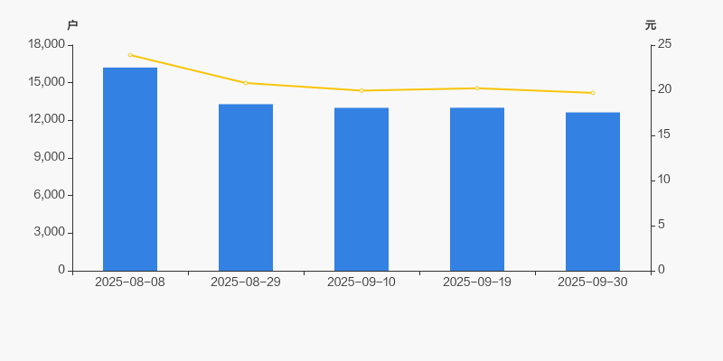 2025年8月8日至今,公司股东户数显著下降,区间跌幅为22.07%。2025年8月8日至2025年9月30日区间股价下降17.53%。