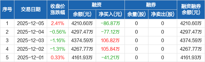 英特科技:融资净偿还86.87万元,融资余额4210.6万元(12-05)
