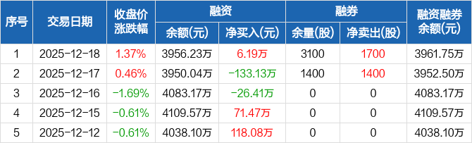 英特科技:融资净买入6.19万元,融资余额3956.23万元(12-18)