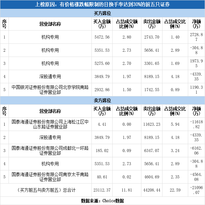 多主力现身龙虎榜,华人健康上涨5.72%(12-19)