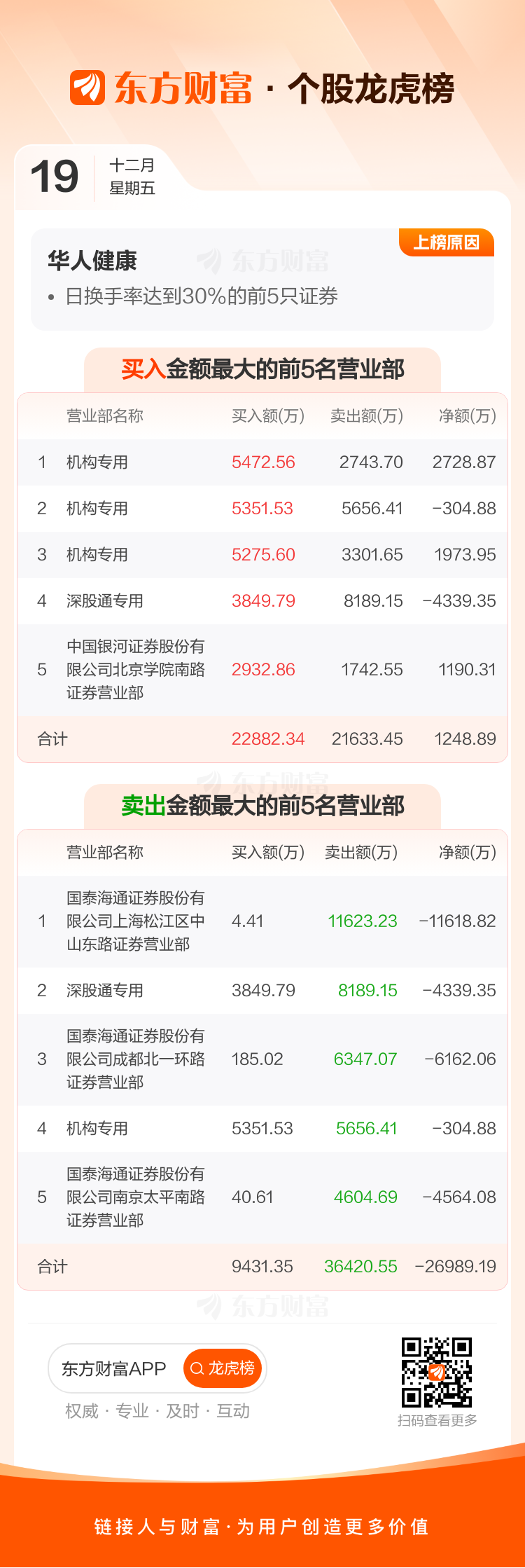 华人健康(301408)龙虎榜数据(12-19)