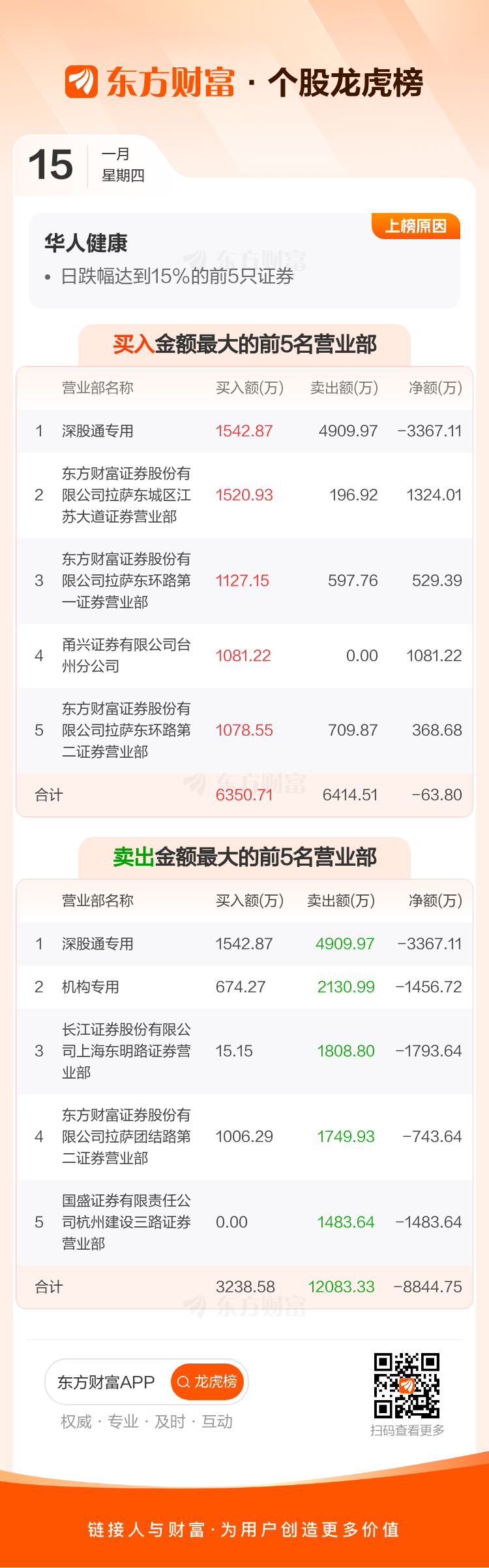 华人健康(301408)龙虎榜数据(01-15)