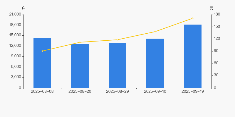自2025年8月20日以来,公司股东户数连续3期上涨,截至目前增幅为44.03%。2025年8月20日至2025年9月19日区间股价上涨52.75%。