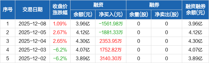 安培龙:融资净偿还1561.98万元,融资余额3.96亿元(12-08)