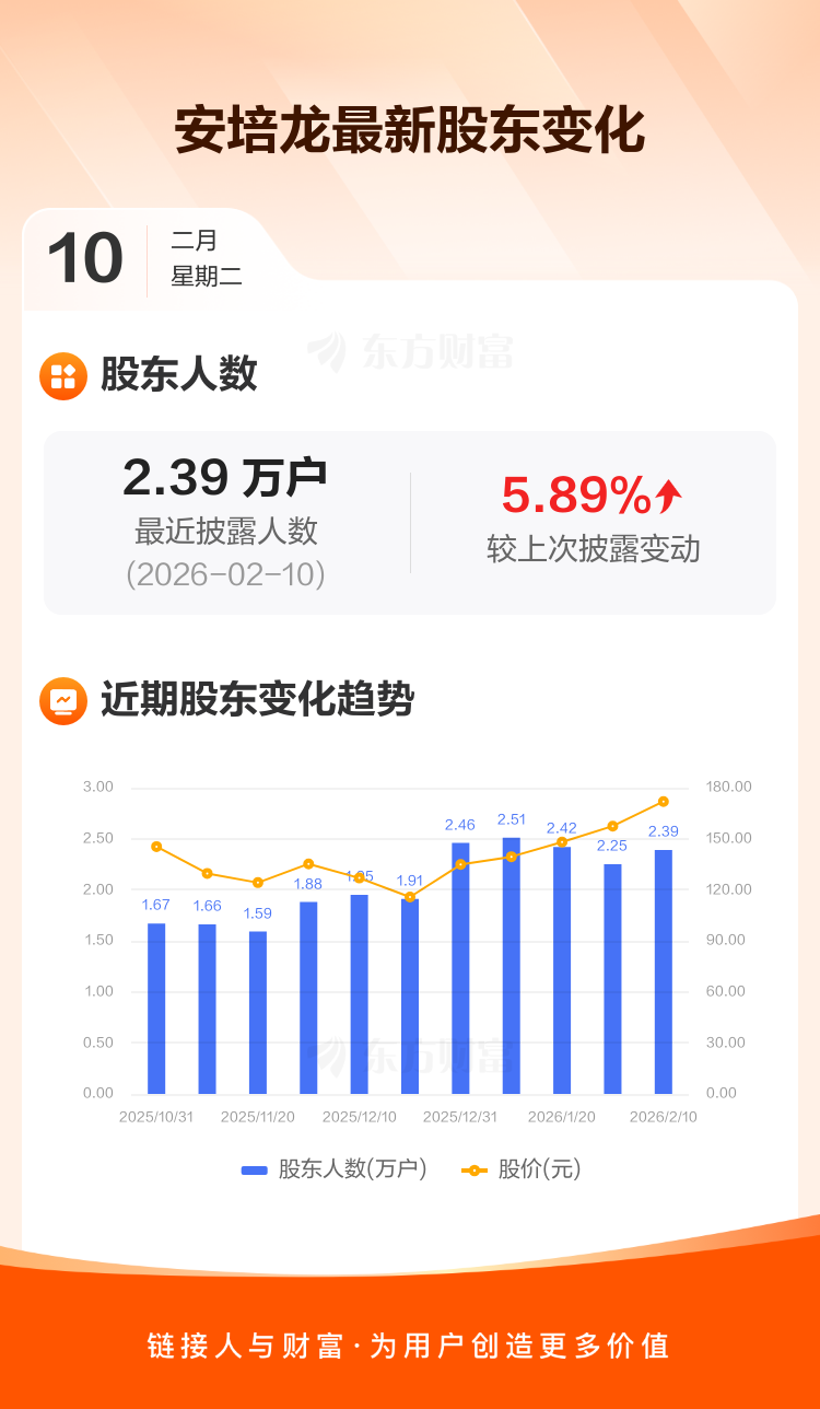 安培龙:截至2月10日最新股东户数2.39万户,较上期增加5.89%