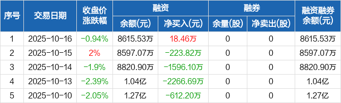 阿莱德:融资净买入18.46万元,融资余额8615.53万元(10-16)