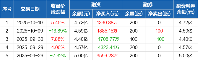 波长光电:融资净买入1330.88万元,融资余额4.72亿元(10-10)
