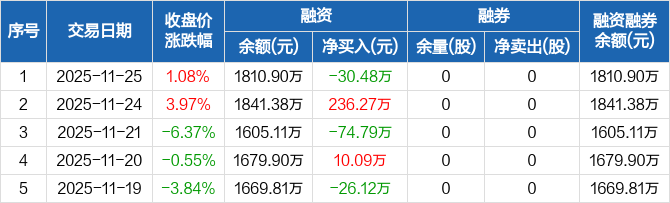 森泰股份:融资净偿还30.48万元,融资余额1810.9万元(11-25)