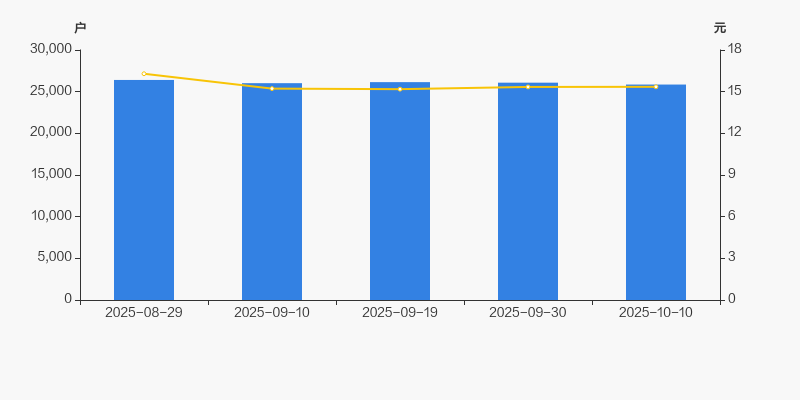 2025年8月29日至今,公司股东户数有所下降,区间跌幅为2.08%。2025年8月29日至2025年10月10日区间股价下降5.77%。