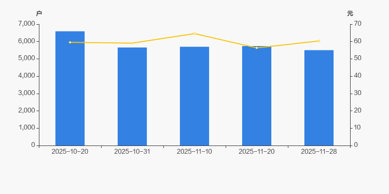 截至2025年11月28日,公司最新总股本为1.05亿股,其中流通股本为4828.25万股。户均持有流通股数量由上期的8412股上升至8772股,户均流通市值52.93万元。