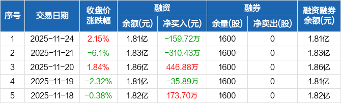 钧崴电子:融资净偿还159.72万元,融资余额1.81亿元(11-24)