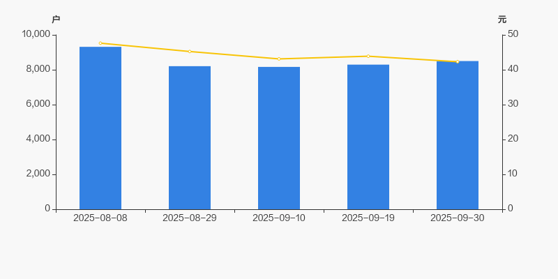 2025年8月8日至今,公司股东户数有所下降,区间跌幅为8.75%。2025年8月8日至2025年9月30日区间股价下降11.17%。