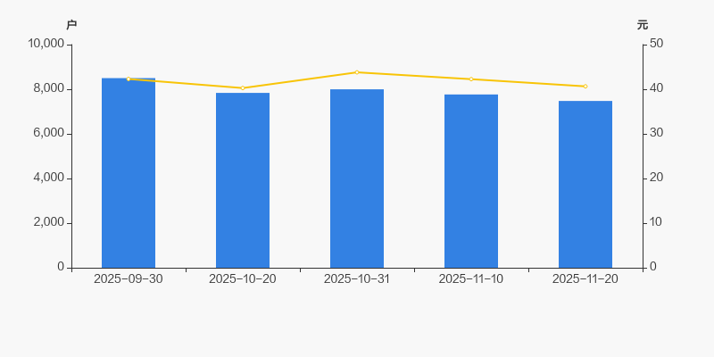2025年9月30日至今,公司股东户数显著下降,区间跌幅为12.05%。2025年9月30日至2025年11月20日区间股价下降3.90%。