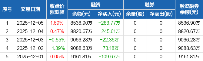 丰茂股份:连续5日融资净偿还累计734.58万元(12-05)