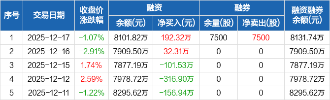 丰茂股份:融资净买入192.32万元,融资余额8101.82万元(12-17)